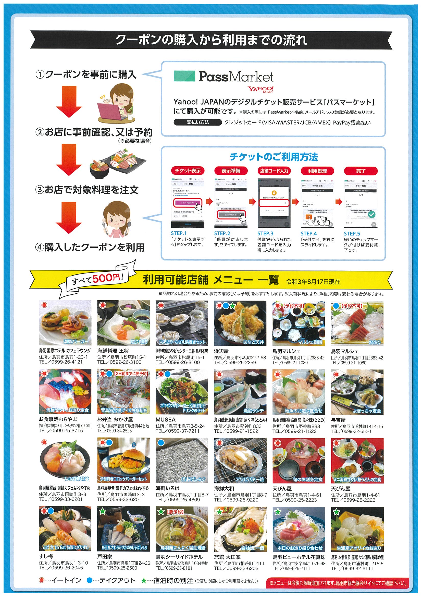 利用可能店舗等詳しくは、下記のリンク先『(予告)【とば 魚 To Eat キャンペーン】8月17日より開始!』(鳥羽市観光協会)をご覧ください。